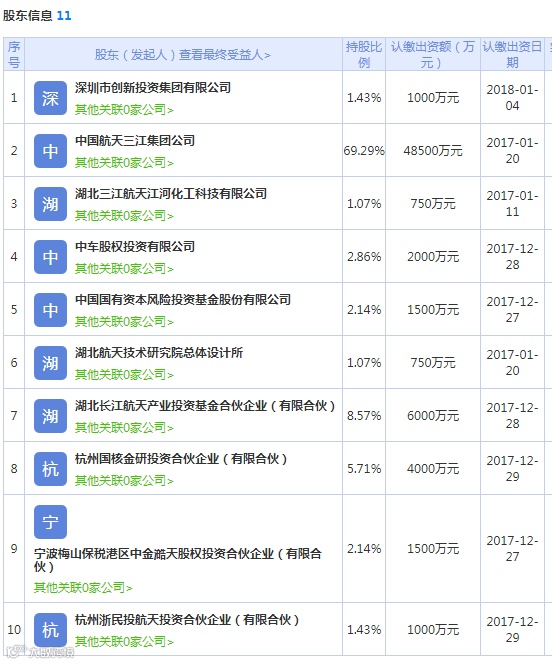 作为一家商业火箭公司,航天科工火箭技术有限公司拥有国资背景。企盾宝信息显示,中国航天三江集团公司持有航天科工火箭近70%股份。航天三江集团是中国航天科工集团有限公司的全资子公司。