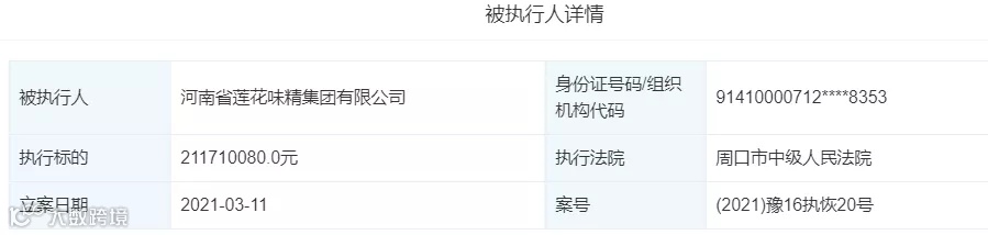 通过企盾宝风险信息显示,莲花味精集团有限公司存在数十条法律诉讼,案由包括借款合同纠纷、企业借贷纠纷等。此外,莲花味精集团有限公司还存在多条被执行人记录,2021年3月,该公司被执行超2亿。