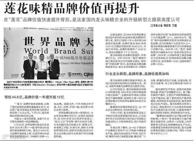 莲花品牌曾被认定为“驰名商标”和“河南省著名商标”,并荣获过多项国际、国内质量大奖。1998年8月,莲花味精集团以优质资产成立河南莲花味精股份有限公司并成功上市,首次募集资金7.01亿元。