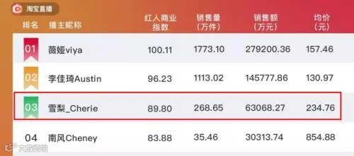 据有关资料显示,雪梨微博粉丝超1500万,淘宝直播粉丝超3000万;林珊珊则微博粉丝超950万,淘宝直播粉丝超1000万。也有媒体排行榜显示,雪梨是淘宝主播中流量第三大主播,仅次于薇娅、李佳琦。