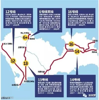 (原标题:深圳5条轨道线路 规划获批分别是6号线支线、12、13、14和16号线,总长约148.9公里)