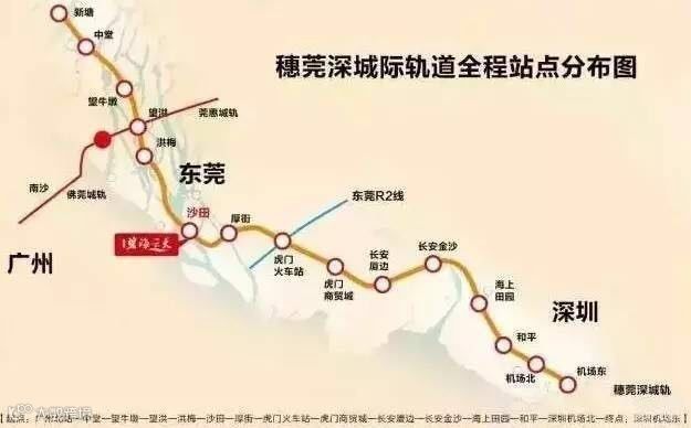 穗莞深城际轨道线路走向起于广州,经东莞至深圳机场(预留延长至深圳福田中心区),线路全长约87公里,总投资196.98亿元。项目建成后,将成为沟通 广州、 东莞、 深圳三市的快速交通通道,对推动 珠江东岸加快建成一小时经济圈、实现 区域经济一体化。