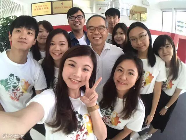 香港民政事务局局长刘江华昨日到深圳前海,探访在深港青年梦工场及前海农产品交易所的实习生,了解他们的工作和生活状况,同学们主动跟局长自拍留念,并送上心意卡和纪念T恤。