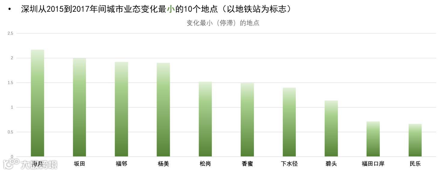 (图片说明:深圳2015-2017年间城市业态变化最小的十个地点)