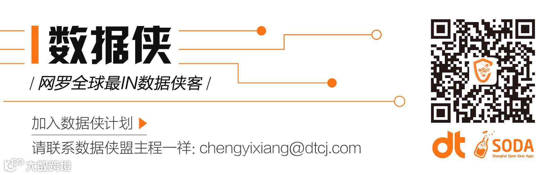 “数据侠计划”由第一财经数据新媒体DT财经发起的数据人社群平台,旗下有数据侠专栏、数据大咖及爱好者社群、线上线下“数据侠实验室”系列活动等项目。