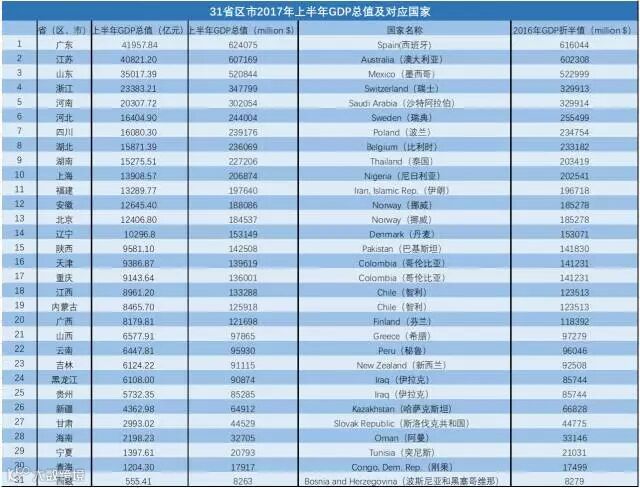 如果将各地的GDP总量与世界各国相比,各省区市均称的上“富可敌国”。