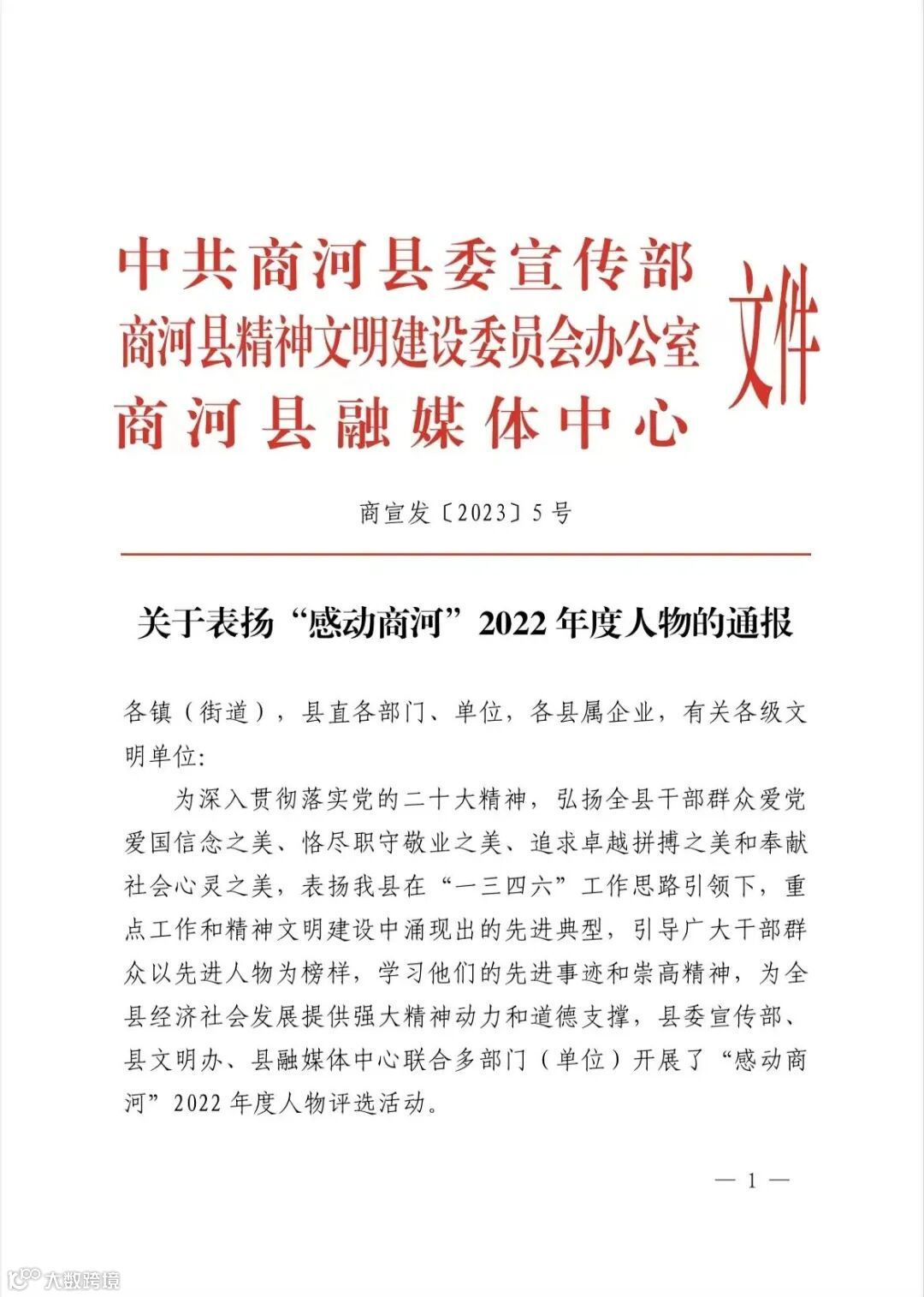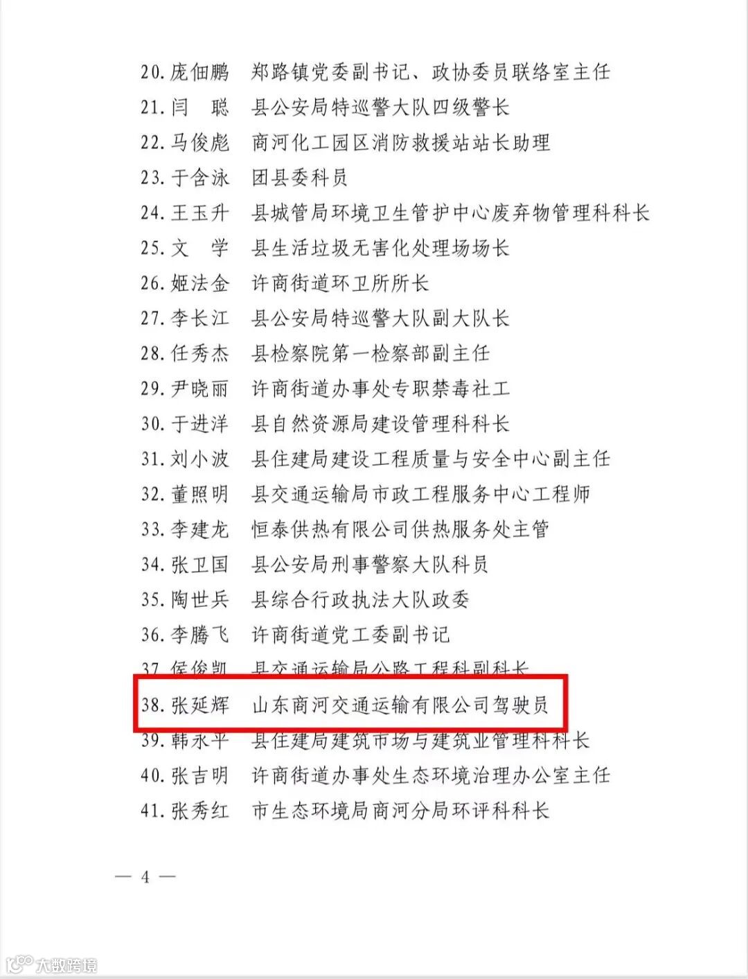 4月27日在县委宣传部主办的商河泉 暖泉城“今朝杯”感动商河2022年度人物颁奖典礼活动中,山商交运驾驶员张延辉获此殊荣。