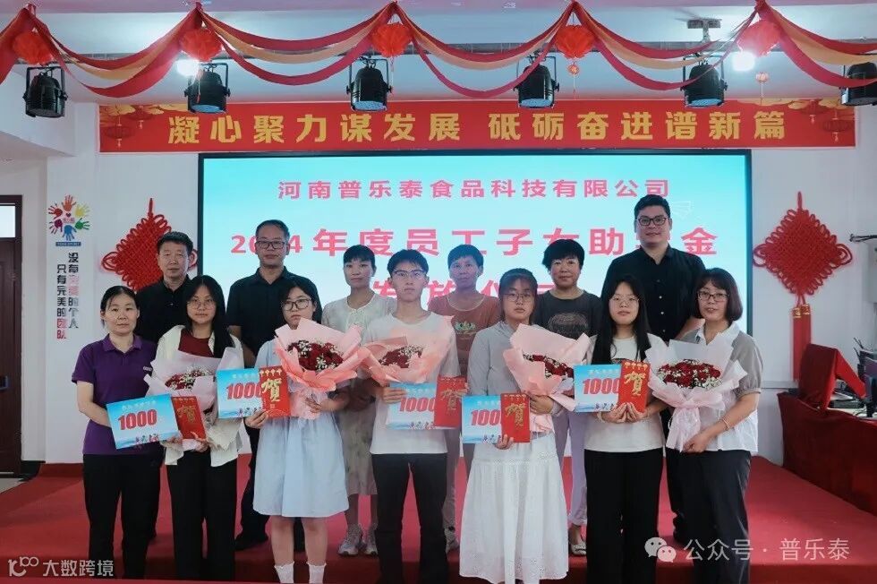 河南普乐泰食品科技有限公司,始终坚持“以人为本”的发展理念,极力给予员工人文关怀,致力于让员工家属感受到普乐泰“家文化”的温暖。通过高考助学金发放形式的关爱,鼓励广大员工注重子女教育,不断奋进,砥砺前行。