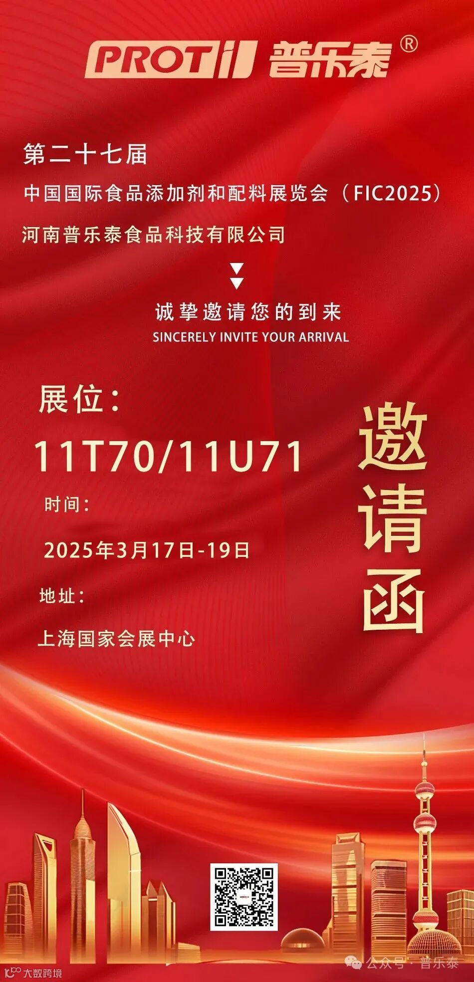 展会邀约║普乐泰食品邀您共赴FIC•2025 第二十八届中国国际食品添加剂和配料展览会