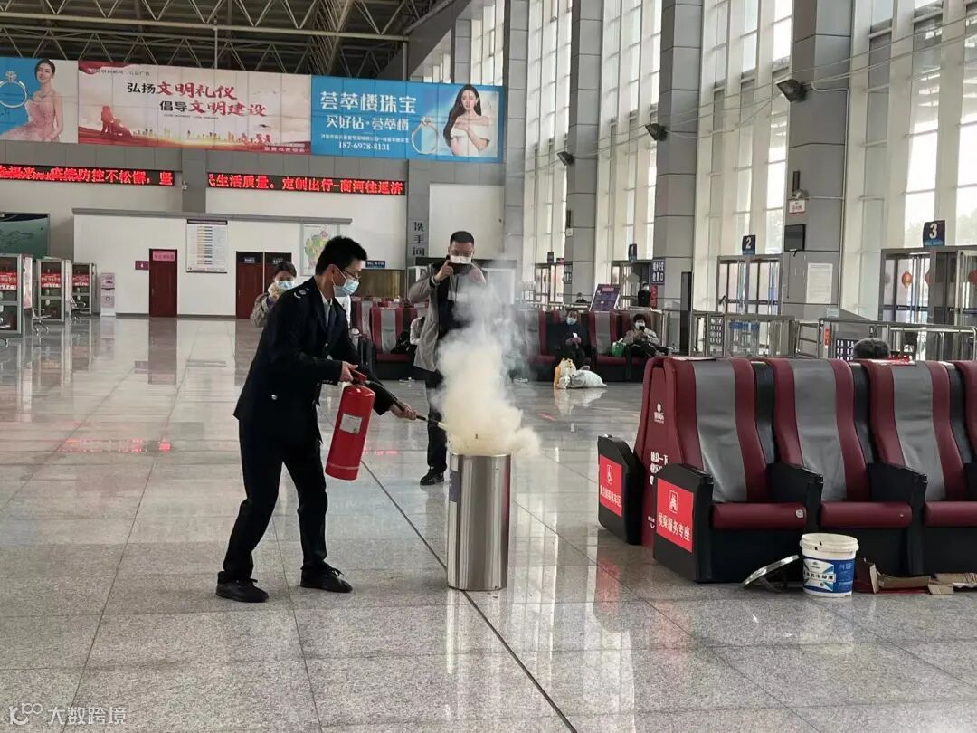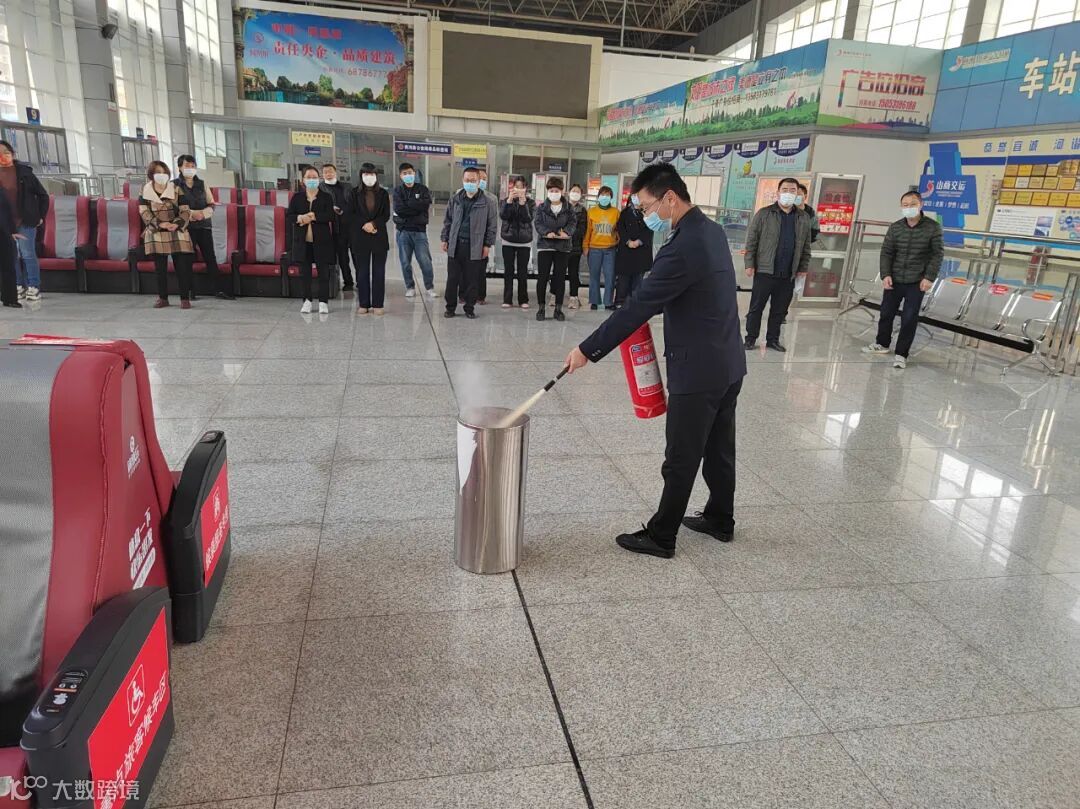 为了更好地将理论与实际相融合,更深层次提高从业人员的应急处置能力,培训结束后,从业人员在候车大厅进行了突发火灾实战演练。