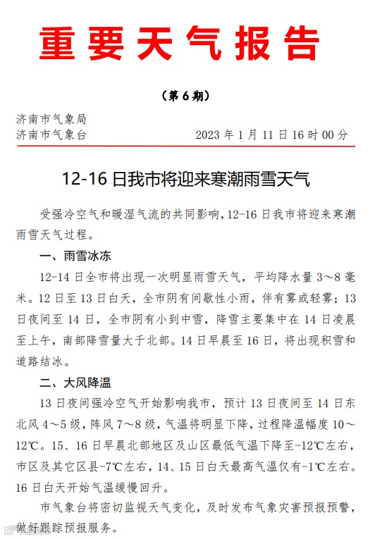 最低-12℃!济南2023首场大范围雨雪要来了!