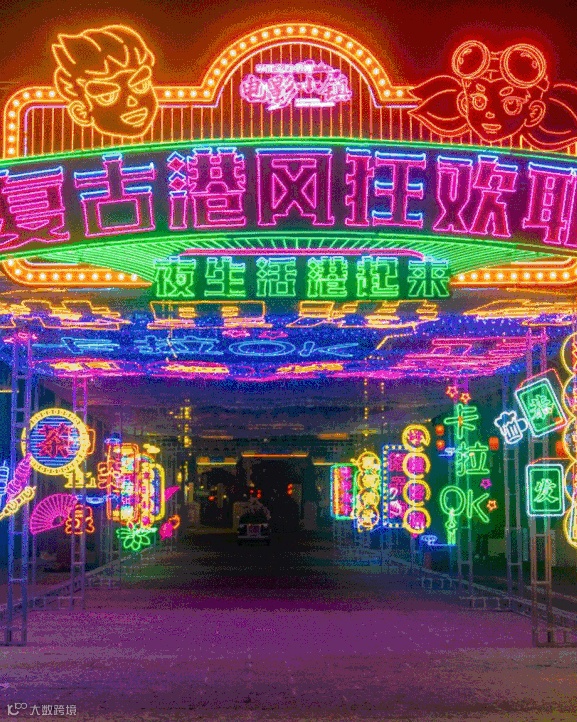 夜幕降临,电影小镇的霓虹长街上尽显夜色浪漫,汇聚济南市集、港式风情、小镇光影独特魅力的霓虹天幕,犹如繁星入梦,超有氛围感!