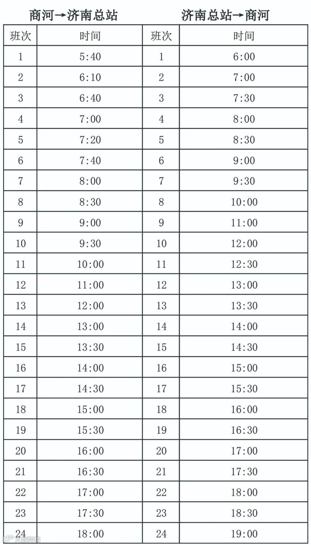 | 商河→淄博 | 7:10、9:00、12:00、14:00 |