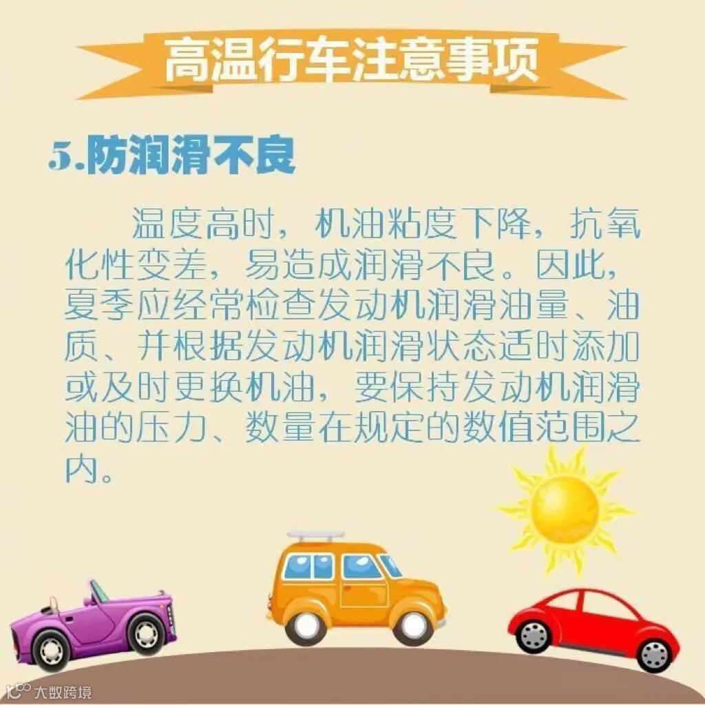 温度高时,机油粘度下降,抗氧化性变差,易造成润滑不良。因此,夏季应经常检查发动机润滑油量、油质、并根据发动机润滑状态适时添加或及时更换机油,要保持发动机润滑油的压力、数量在规定的数值范围之内。