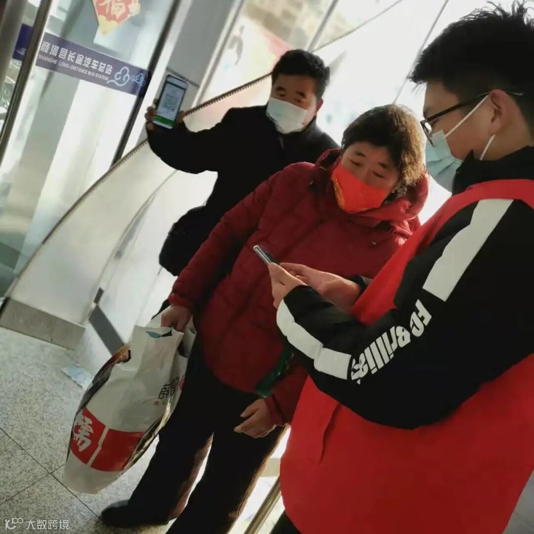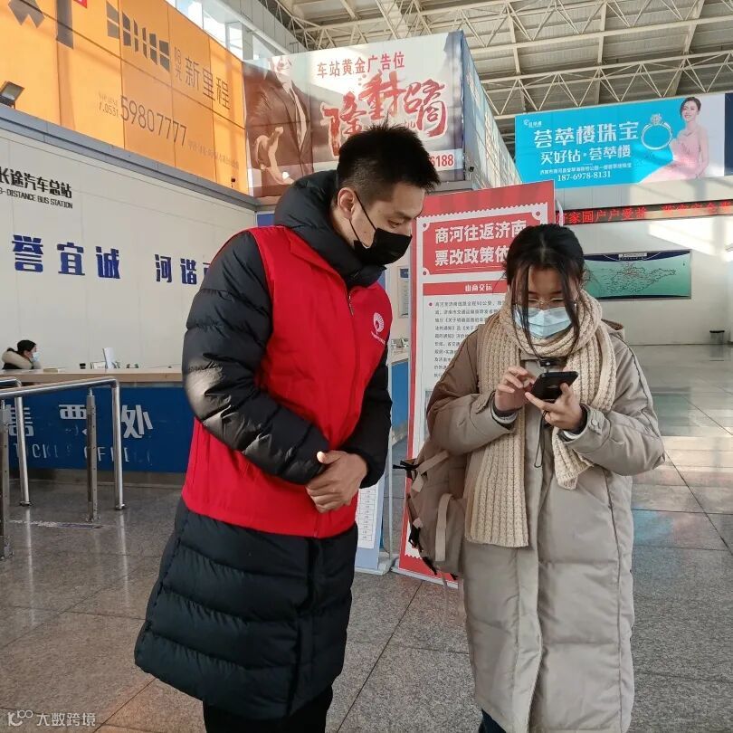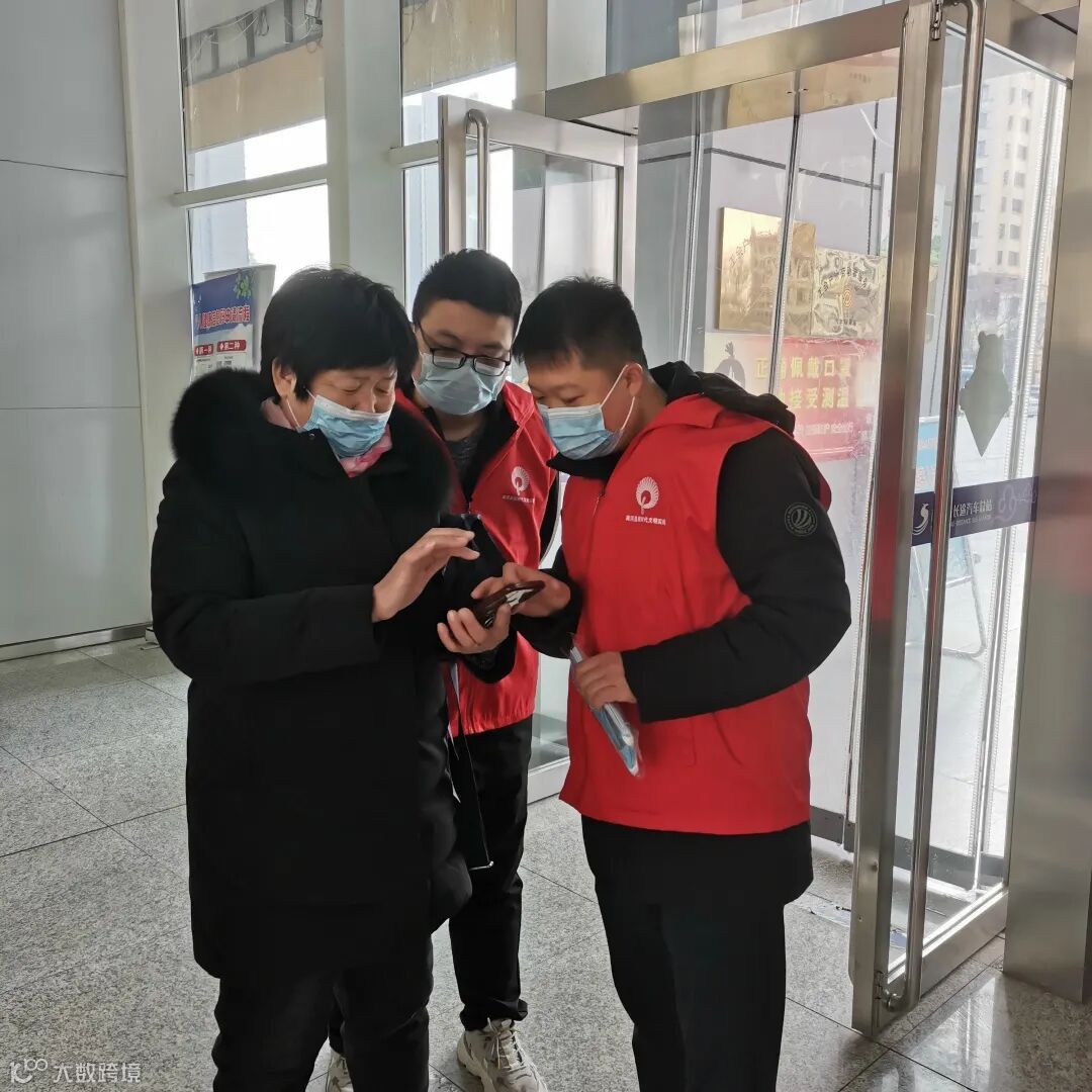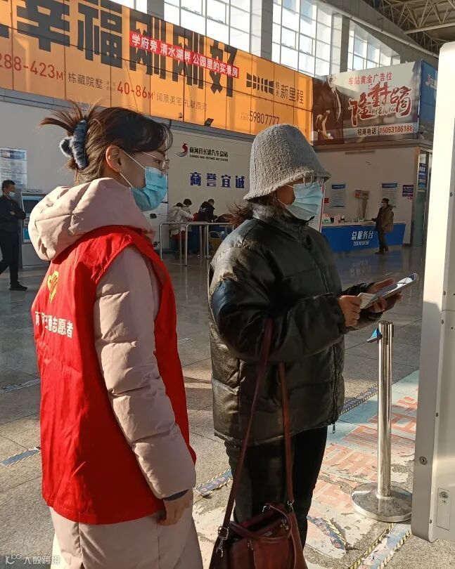 “打开微信,点击右下角【我的】进入【服务】.....”志愿者在进站门口,一边为忘记带口罩的乘客发放口罩,提醒乘客做好防疫,帮助查验体温,一边手把手不厌其烦指导不会操作的乘客查验健康码。对使用老年机的人员,志愿者们引领其用身份证进行实名登记。