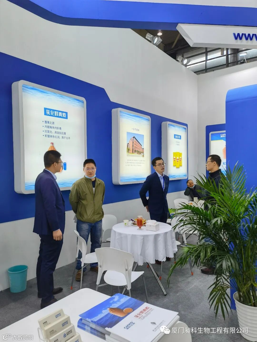 11月19日,2020中国水产前沿展在南京国际博览中心开幕,厦门昶科生物推出明星产品——乳化虾青素及破壁虾青素,尤其是乳化虾青素,在展会上惊艳亮相,受到了广泛关注和好评。