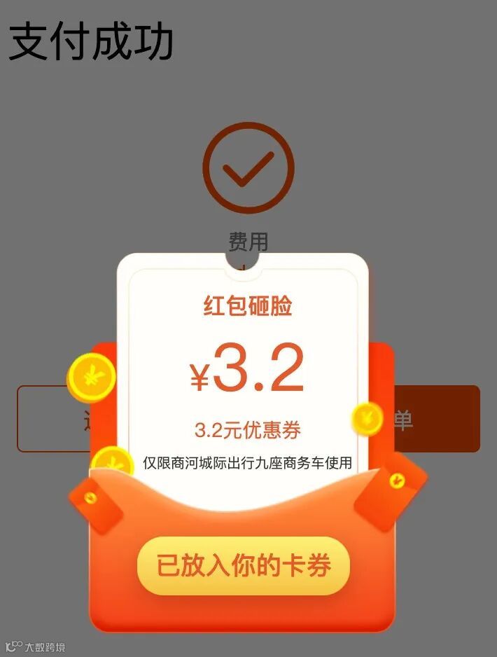 购票成功后可再次领取3.2元优惠券,下次购票即可使用