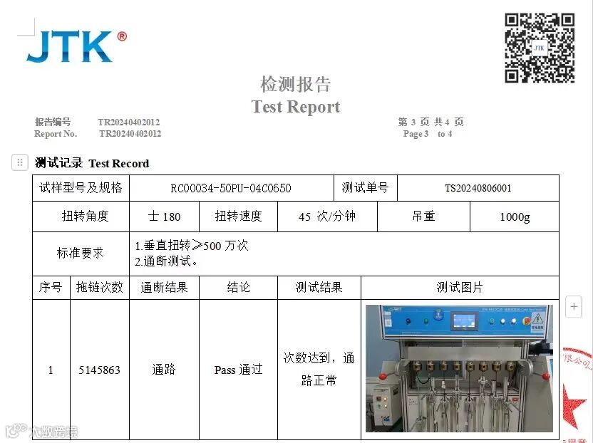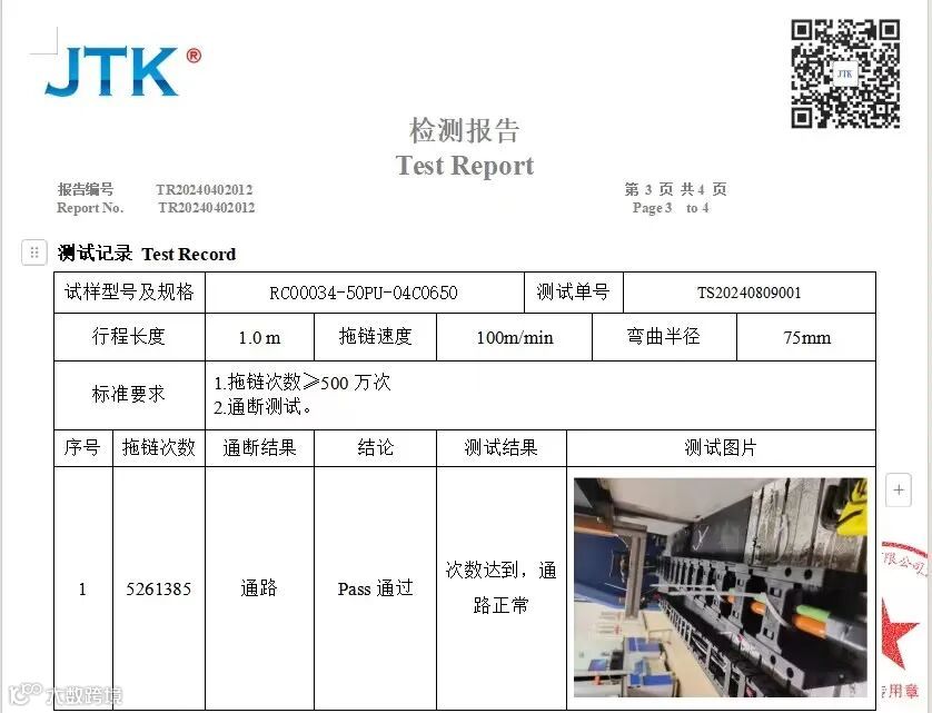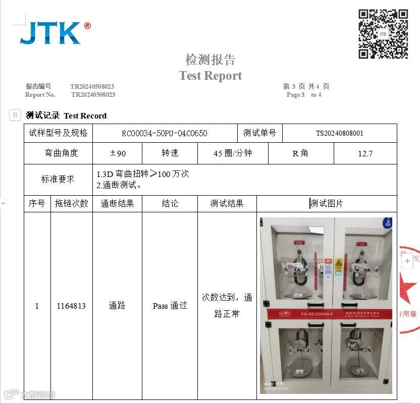 工业以太网是应用于生产和过程自动化等工业控制领域的以太网技术,无论是产品的强度、适用性、可互操作性、可靠性、抗干扰性、本质安全性等方面都远远大于普通办公室/机房的网线。工业网线支持EtherNET/IP协议,搭配RJ45工业插头,大大减少了环境对线材的影响。普通网线是单铜导体,我司工业网线为多股绞合导体,增加了其运动性能,拖链测试分别可达到500万、1000万、2000万、5000万次。测试方法严格按照深圳市机器人特种线缆行业协会发布的团体测试标准《T/SZRCA 002-2022:机器人特种线缆测试技术规范》进行测试,且福禄克测试米数可过90米以上。