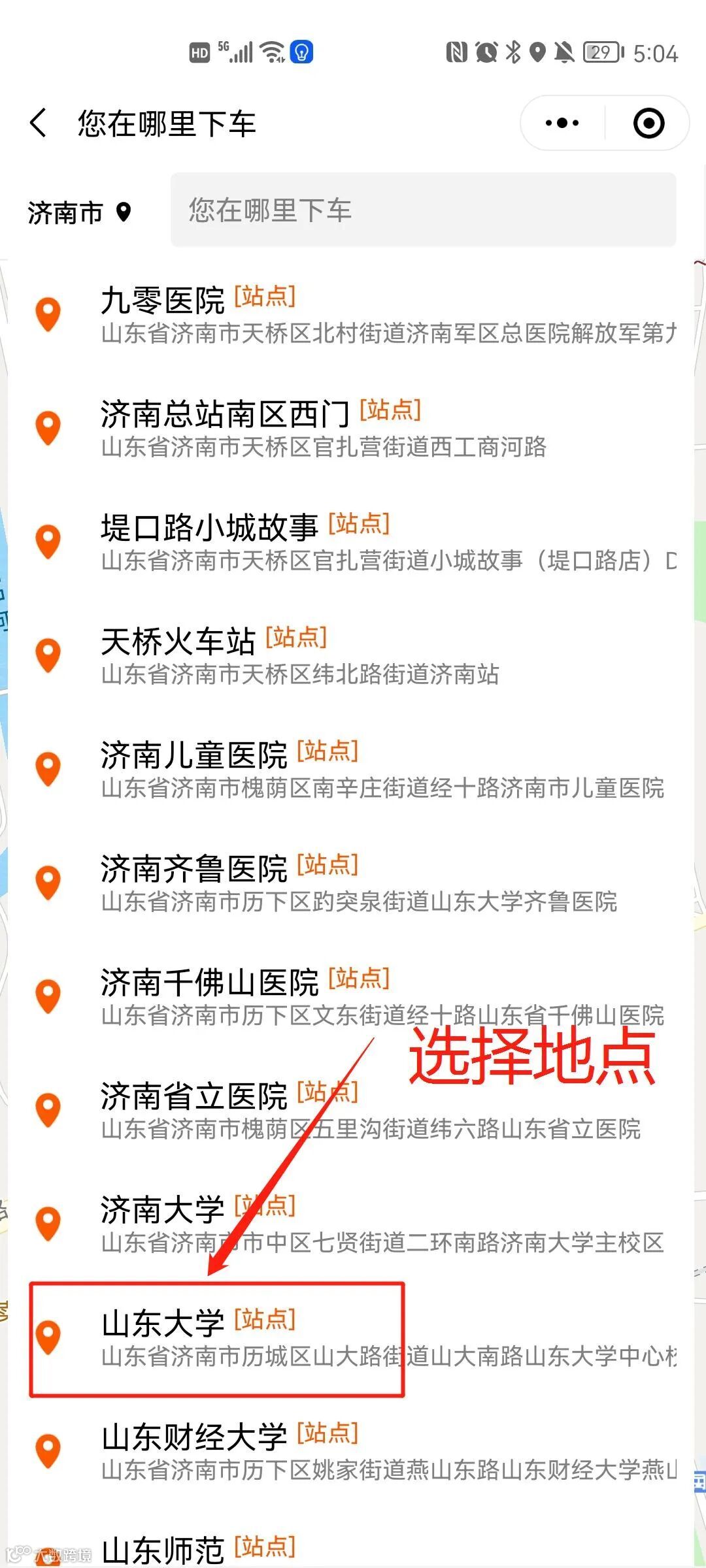 商河种子站→京东大酒店→百大购物→商河联通→人民公园→爱琴海→文昌桥→彩虹路→电业局→南苑驾校→檀都→凤凰城→泰和名都→郊野公园→零点国际→将军集团→全福立交桥→洪家楼→省图书馆→工业南路西口→甸柳庄→文化东路东口→燕山立交桥→千佛山医院→泉城公园→八一立交→和谐广场→儿童医院