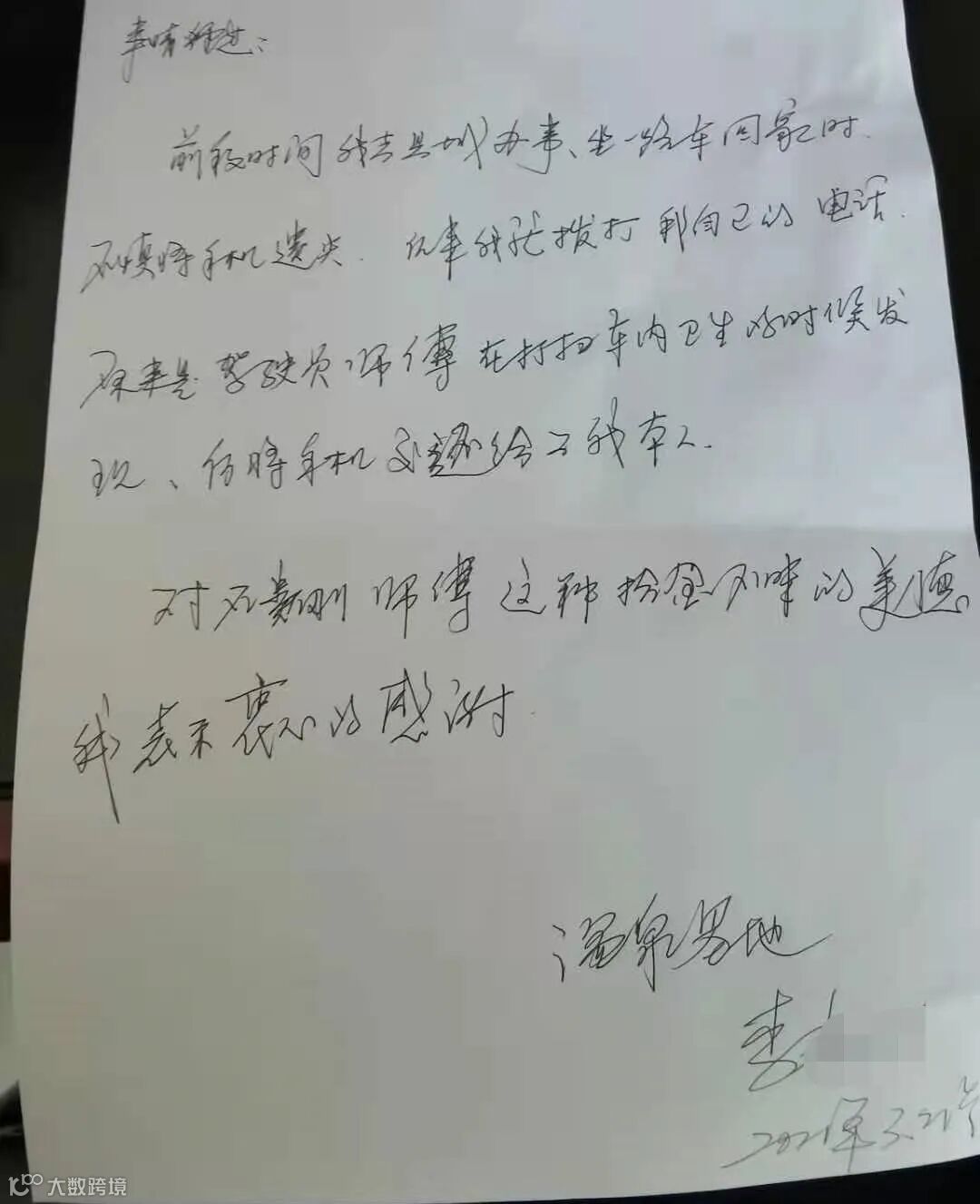3月21日,李女士来到我公司城区公交办公室送上一封手写感谢信,对于1路公交驾驶员石贵刚师傅的感激之情溢于言表,并称赞我公司职工拾金不昧的高尚品德。