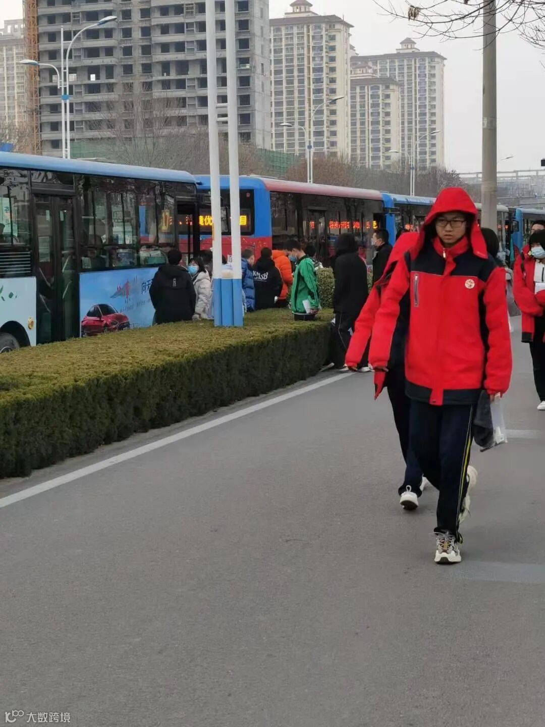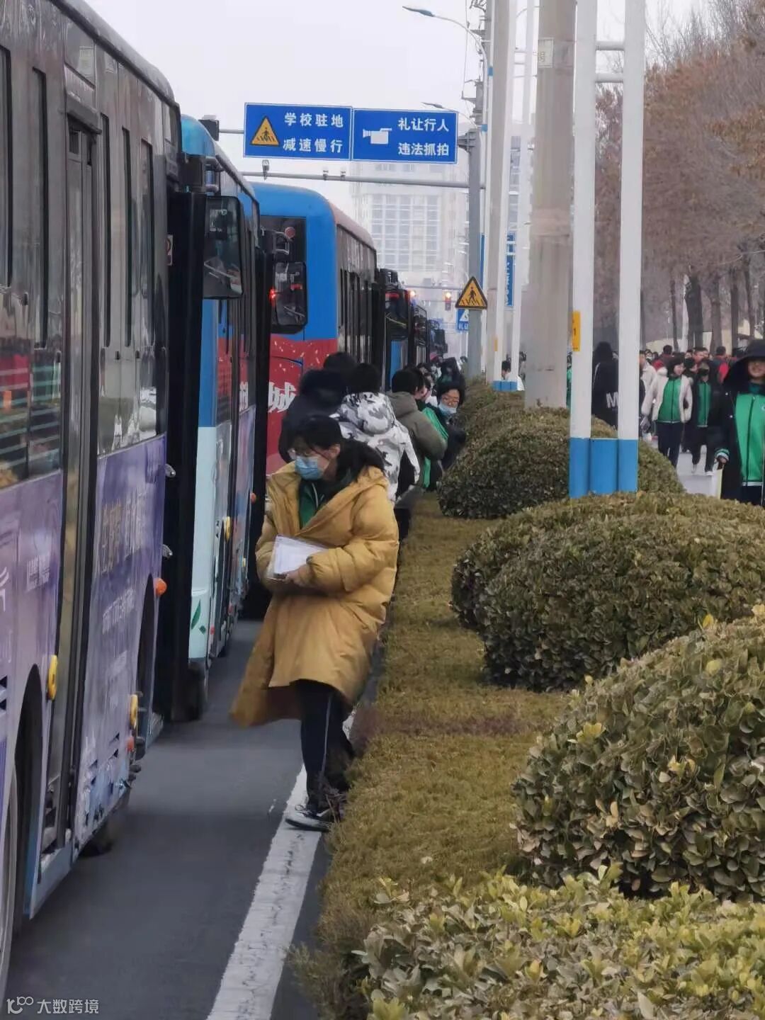 为保障考试当天交通通畅,我站在每个校区均安排了办公人员进行现场调度,提前达到现场,保证车辆有序运行和停放,减少对街道交通造成的压力,引导学生正确坐车,避免因坐错车辆造成考试迟到。