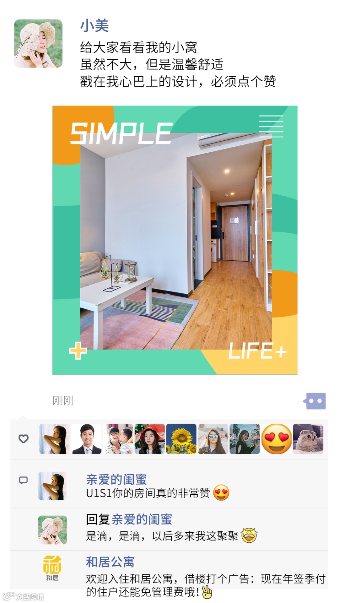 和居公寓面向租客直租,“真实房源、拎包入住、专业服务、生活舒心”四大优点一目了然。现在年签季付的租户,可免管理费(具体咨询前台管家)。专业服务,让充满理想的生活就从租房开始。