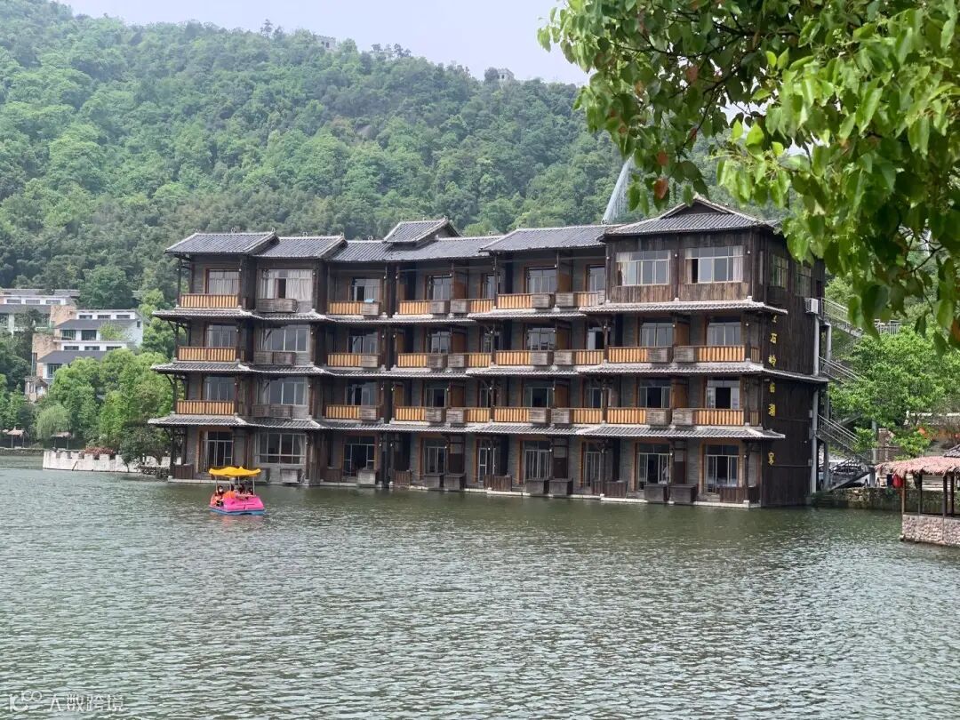 坐落在溪霞湖边的小木屋, 错落有致地排列在岸边。碧绿的湖水,荡起层层涟漪。