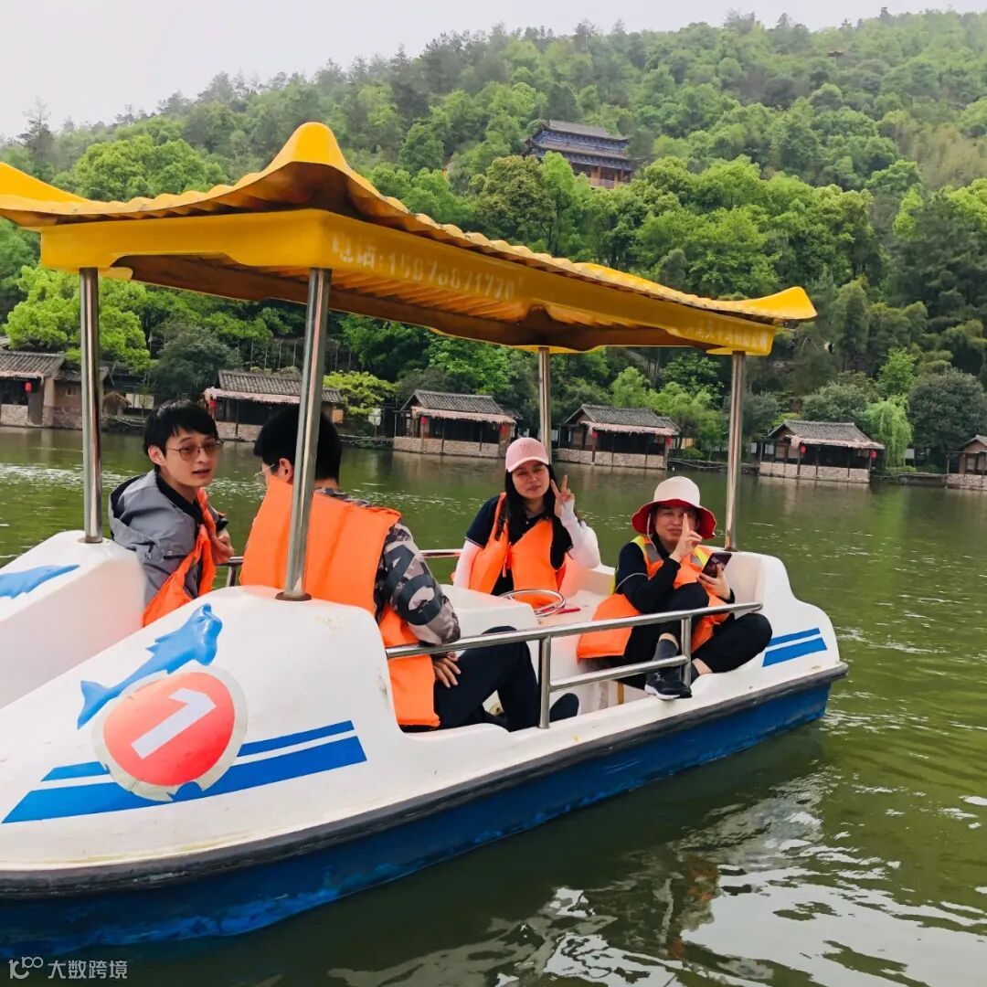 趁着阳光正好,春风和煦,我们坐在划艇上,笑着闹着,聊着天,吹着风,欣赏两岸慢慢后退的风景。刹那间,让人感觉心胸突然开阔,惬意极了!