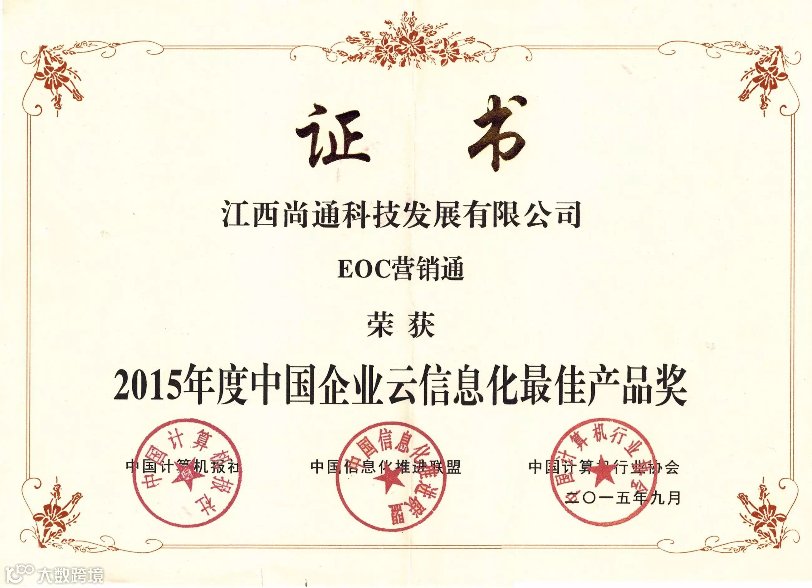 大会揭晓了2015中国行业信息化评选活动获奖榜单,其中,由江西尚通科技自主研发的“EOC营销通“荣获“2015年度中国企业云信息化最佳产品奖”。
