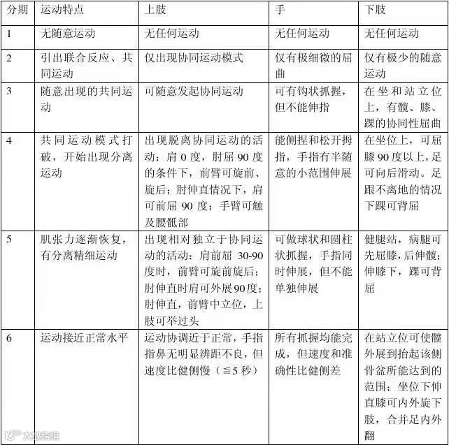Brunnstrom提出的脑损伤后恢复的6个阶段