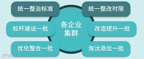 对存在突出问题的工业园区、企业集群、重点管控企业制定整改方案,做到措施精准、时限明确、责任到人。各企业集群要统一整治标准,统一整改时限,标杆建设一批、改造提升一批、优化整合一批、淘汰退出一批。