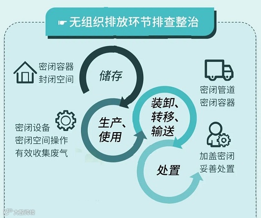 企业在无组织排放排查整治过程中,在保证安全的前提下,加强含VOCs物料全方位、全链条、全环节密闭管理。