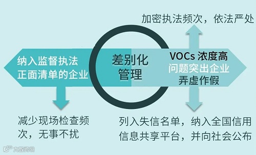 加大财政支持力度,中央大气污染防治专项资金、各省份环保专项资金重点向VOCs治理倾斜。实施差别化管理,对纳入监督执法正面清单的企业减少现场检查频次,做到无事不扰。