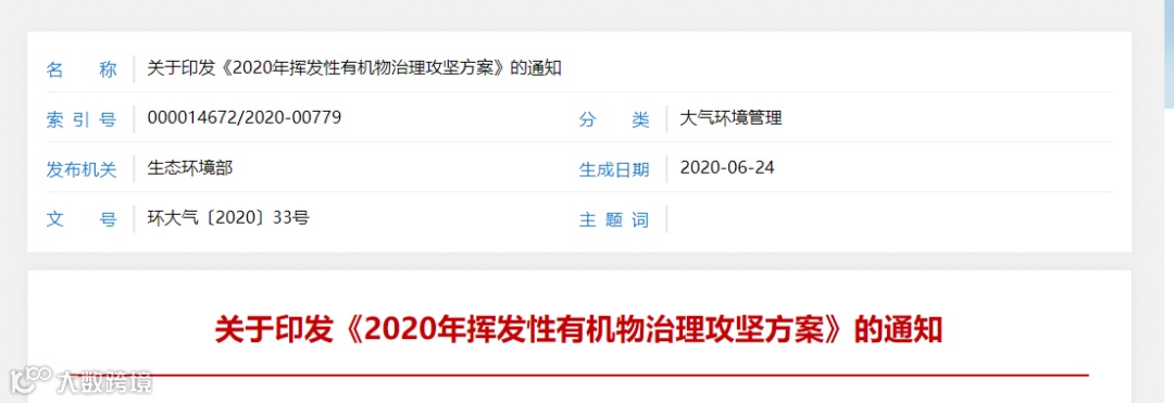6月24日,生态环境部印发《2020年挥发性有机物治理攻坚方案》,要求把夏季VOCs攻坚行动放在重要位置,作为打赢蓝天保卫战的关键举措。