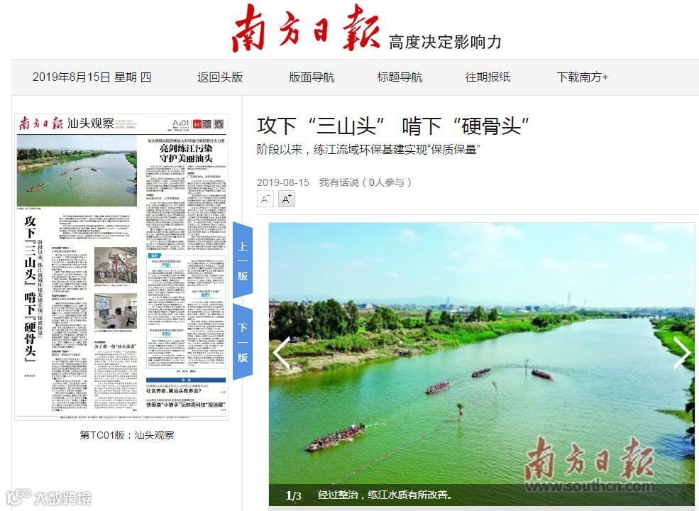 练江流域综合整治是省委、省政府的一项重大部署,也是水污染防治工作的重点和难点。刚刚落幕的中共汕头市委十一届九次全会提出,坚决打赢污染防治攻坚战,加快练江流域污染综合整治,“要打几场漂亮的重大战役,集中力量攻克老百姓身边的生态环境突出问题”。
