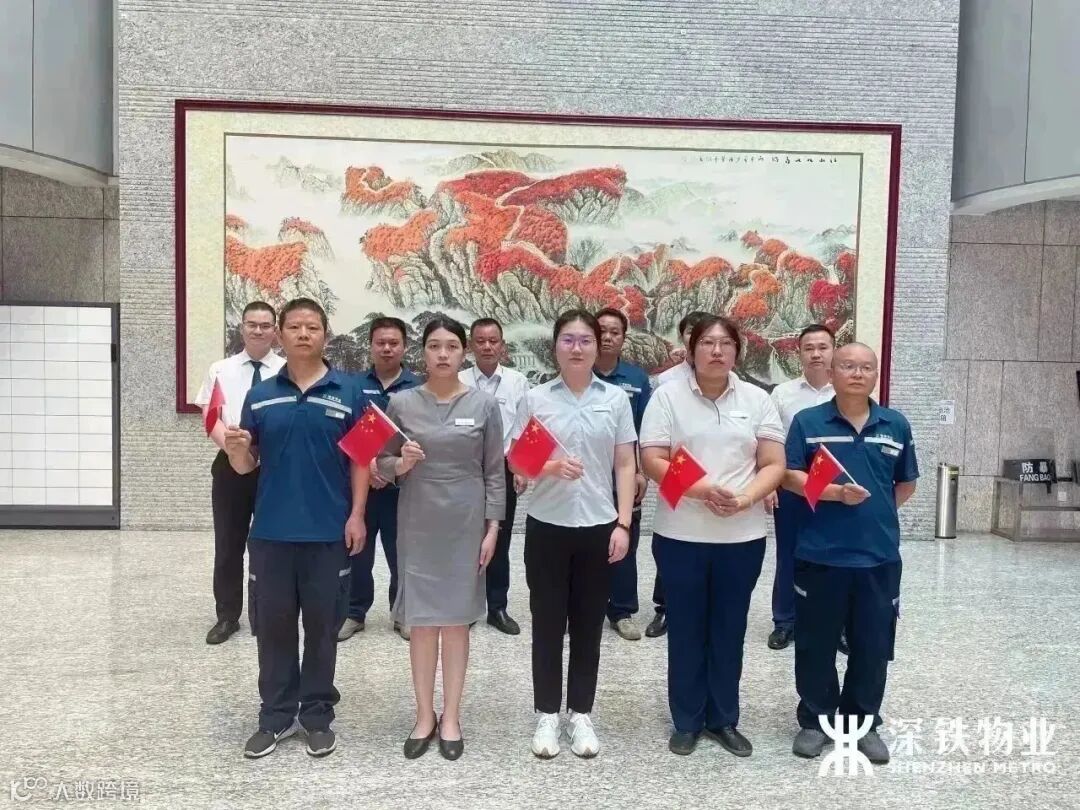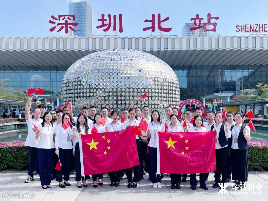 以心中红心,献礼盛世中华,罗湖枢纽项目全体员工祝福伟大的祖国母亲生日快乐!红旗飘动的曲线,是祖国最美的旋律,也是我们心中最动情的赞歌,我们将全力做好市民出行服务保障,创造一流物业服务!