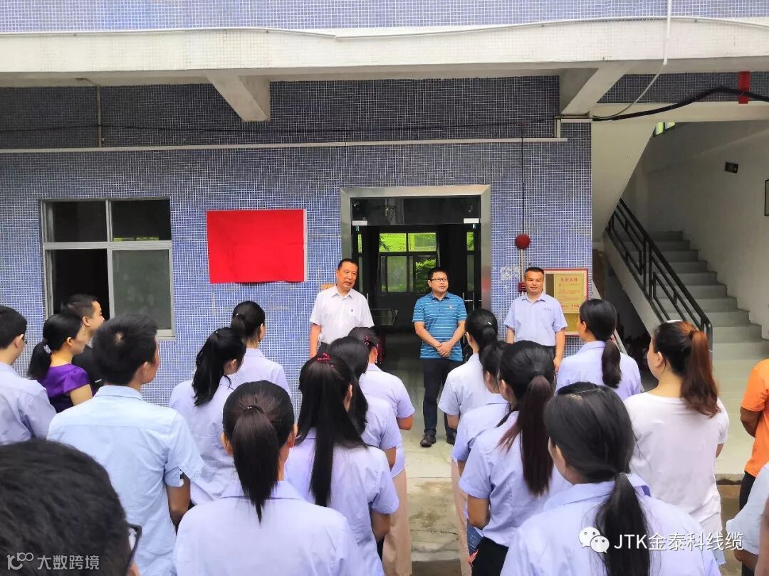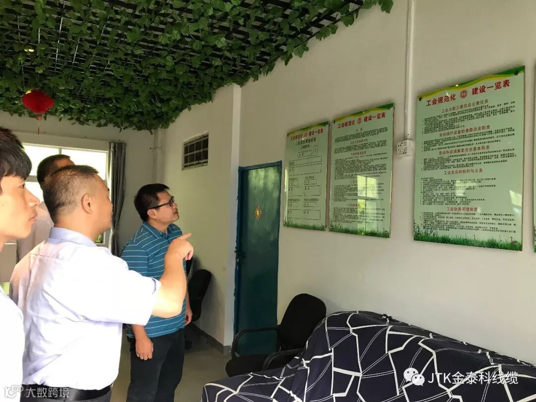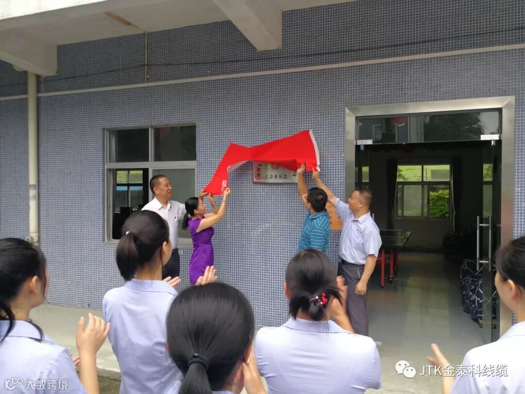 JTK金泰科线缆2019年6月25日上午,深圳市金泰科环保线缆有限公司“工会委员会”揭牌仪式隆重举行,龙华区观澜街道黎光社区党委书记、工作站站长吴国斌,社区党委委员、工联会主席樊鸿儒出席了揭牌仪式,仪式后公司张总及工会成员陪同社区领导一起参观了公司职工之家,社区领导对公司工会取得的成绩给予了肯定和支持,并对公司工会后续工作提出新的要求,希望我司工会再接再厉,争做社区工会标兵单位。