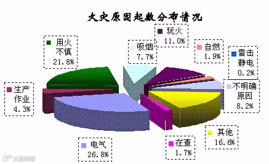 据统计,电气火灾的发生占比火灾发生起因的一大部分(如上图),所以电气火灾的预防势在必行。