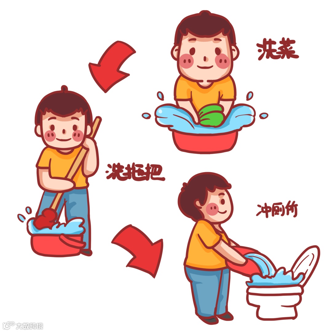 (3)淘米水、煮过面条的水,用来洗碗筷,去油又节水。