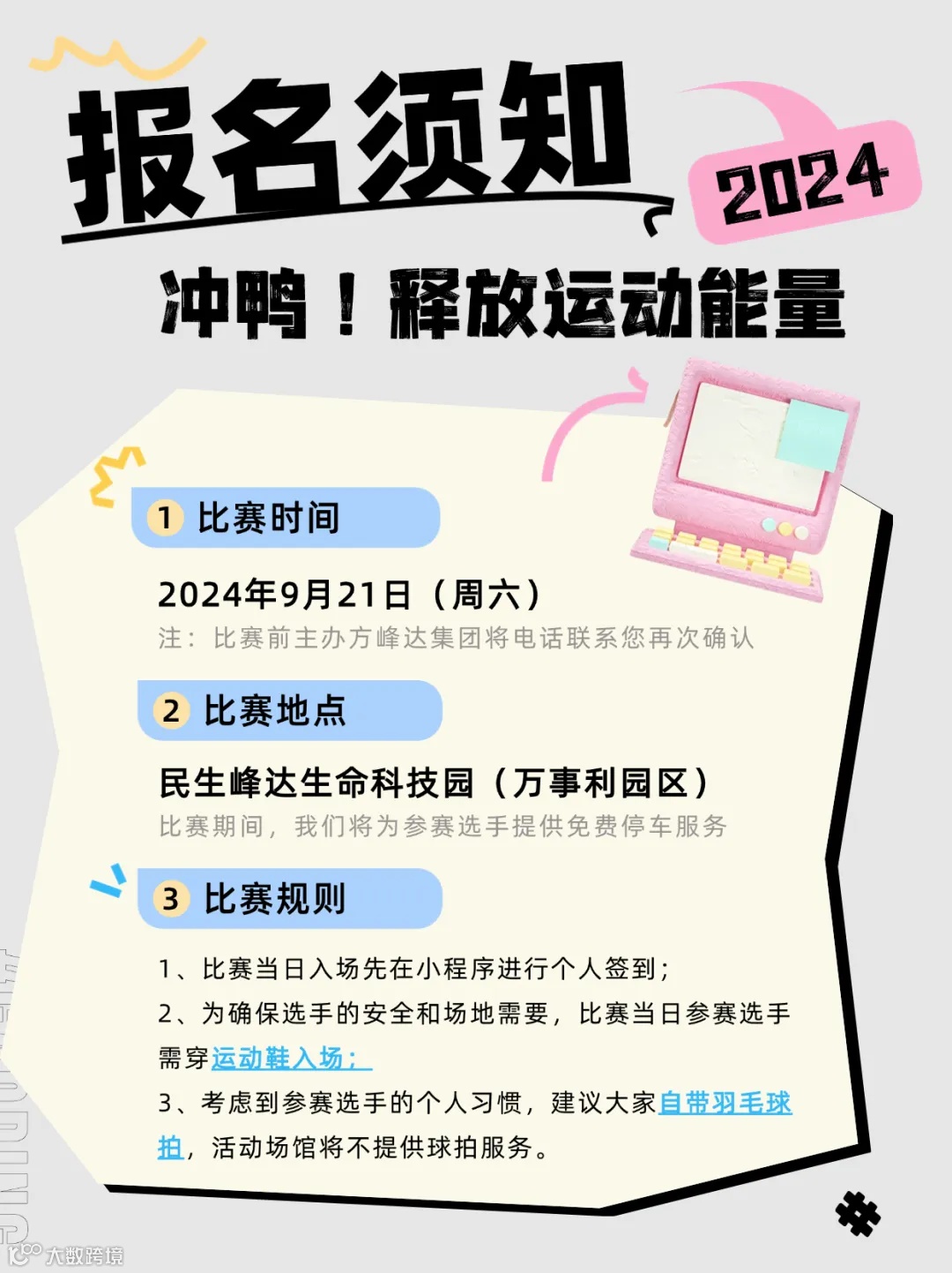 千元现金红包,就等你了!第三届“峰达杯”羽毛球比赛报名进行时