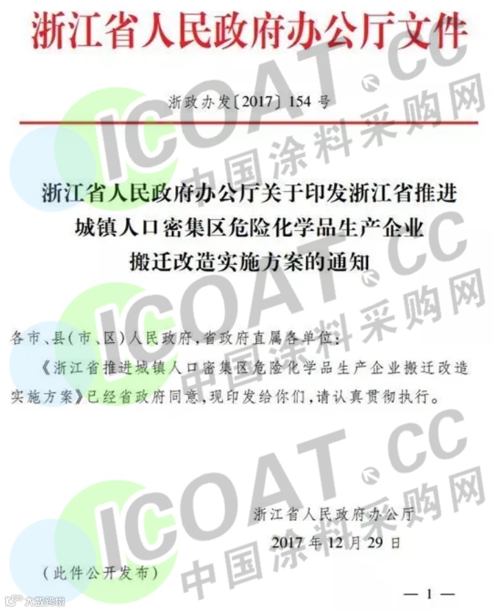 据涂料采购网了解,早在2017年国务院办公厅便印发了《关于推进城镇人口密集区危险化学品生产企业搬迁改造指导意见》,提出到2025年,城镇人口密集区现有不符合安全和卫生防护距离要求的危险化学品生产企业就地改造达标、搬迁进入规范化工园区或关闭退出。其中,中小型企业和存在重大风险隐患的大型企业2018年底前全部启动搬迁改造,2020年底前完成;其他大型企业和特大型企业2020年底前全部启动搬迁改造,2025年底前完成。而经过摸排,全国80%以上的都属于在2020年底前搬出的,化工园区是主要的承接载体。