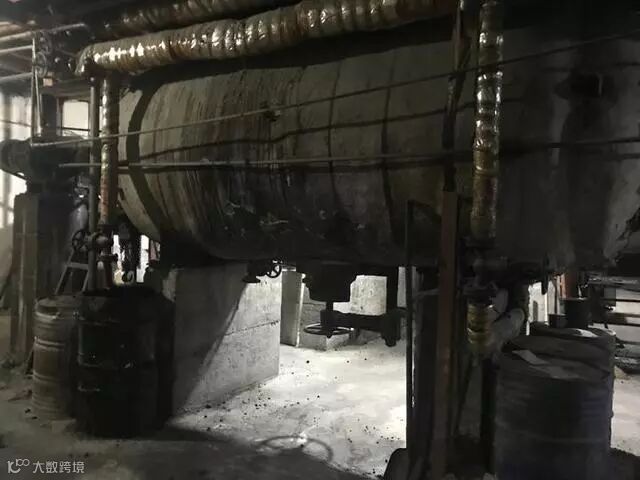 此时,厂房里亮着昏暗的灯光,机器正发出轰鸣声,而外面的异味也比白天更浓了。记者走进企业,发现有3名工人正在工作,他们将橡胶颗粒铲进锅炉,燃烧后的橡胶进入冷却池,冷却水通过类似窨井沟的装置往外流。