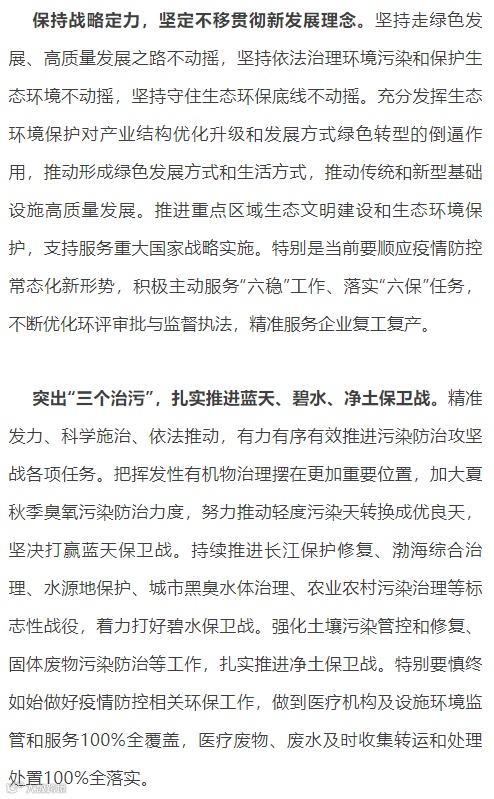 良好生态环境是全面建成小康社会的底色,打赢打好污染防治攻坚战直接关系全面建成小康社会成色。习近平总书记多次强调,小康全面不全面,生态环境质量很关键。我们要深入学习贯彻习近平总书记重要讲话和指示批示精神,保持方向不变、力度不减,突出精准、科学、依法治污,以更加有力的举措坚决打赢打好污染防治攻坚战,推动生态环境质量持续好转,确保全面建成小康社会得到人民认可、经得起历史检验。