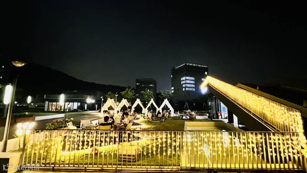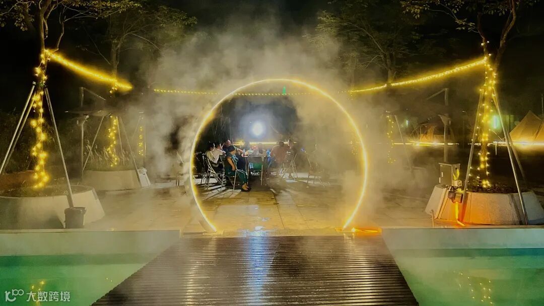 夜幕灯光笼罩下的户外露营