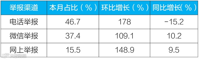 二、微信、网上举报同比增长一成