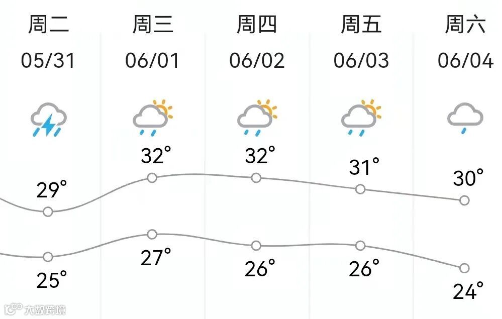 30日至6月1日多云为主,局地有(雷)阵雨