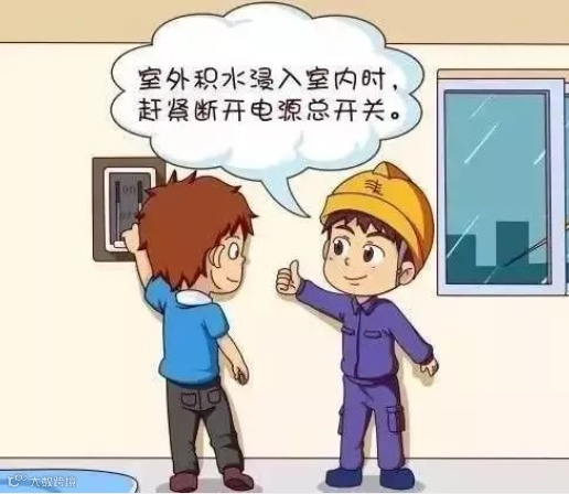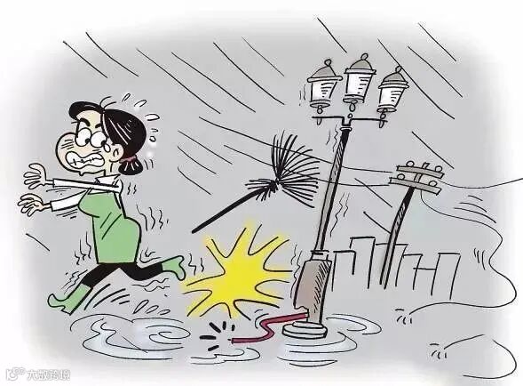 台风暴雨等极端天气易导致电气设备设施遇水发生漏电现象,行人应远离被雨水浸泡的路灯、电线杆、配电柜、公共自行车锁车器等电气设备设施;如发现电线断落在水中,切不可触摸或靠近。若误入电线断落附件的区域,一定要保持冷静,不能撒腿就跑,此时应单腿跳跃离开现场。