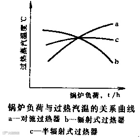 对流式过热器布置在对流烟道内,是以吸收烟气对流放热为主的过热器,这种型式的过热器,蒸汽温度是随着锅炉负荷的增加而升高的。这是因为当负荷增加时,燃料消耗量增加,流经过热器的烟气量增多,提高了烟气对管壁的放热系数;而且随着燃料量的增加,使炉膛出口烟温有所提高,提高了平均温差。虽然蒸汽流通量有所增加,但单位质量的蒸汽还是获得较多的热量,使出口蒸汽温度提高。反之,当锅炉负荷减少时,对流过热器的蒸汽温度将降低。锅炉负荷与过热汽温的关系见附图中。