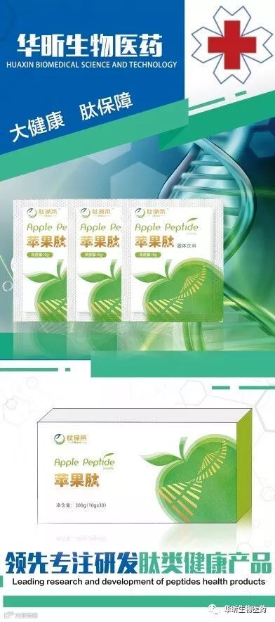 “苹果肽”是华昕生物医药科技有限公司以大豆分离蛋白、膳食纤维、苹果粉剂、小分子多肽等主要原料研发的一款功能食品。