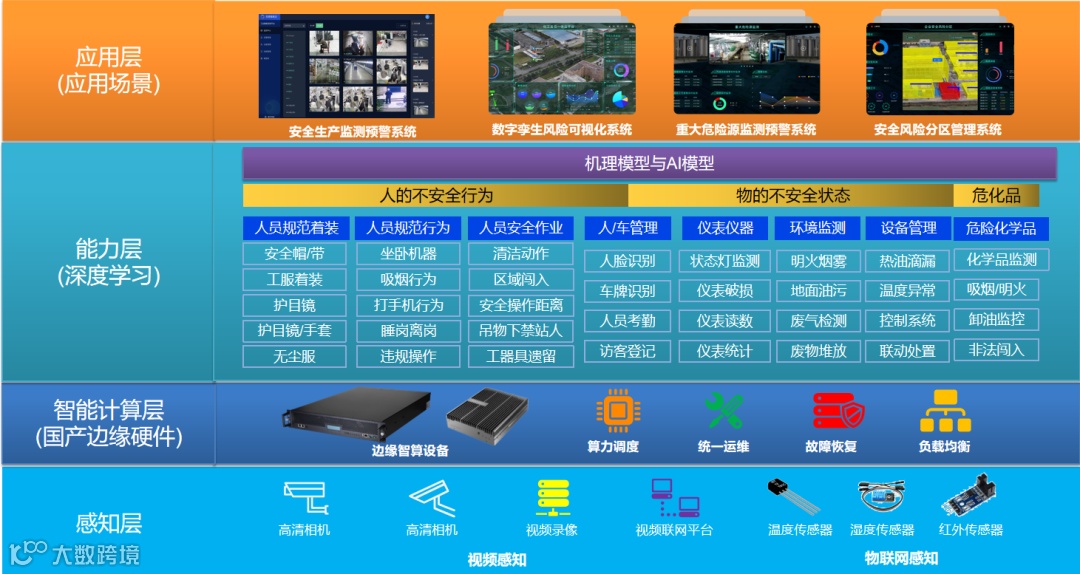 2.国产化自主可控,高性能计算,微服务高可用,支持大数据大用户场景,低代码开发平台。自研工业互联网平台接入多场景设备万台,构建算法模型136个,温湿度、烟感、水浸等安全环境传感器,应用5G网络进行大规模的数据采集和监测告警,形成统一的安全环境监测平台。基于多模态的Ai算法平台和多场景应用算法,将Ai识别技术准确率94.5%以上,突破单一监测手段局限多源知识协同,赋能智慧安全运维巡检;